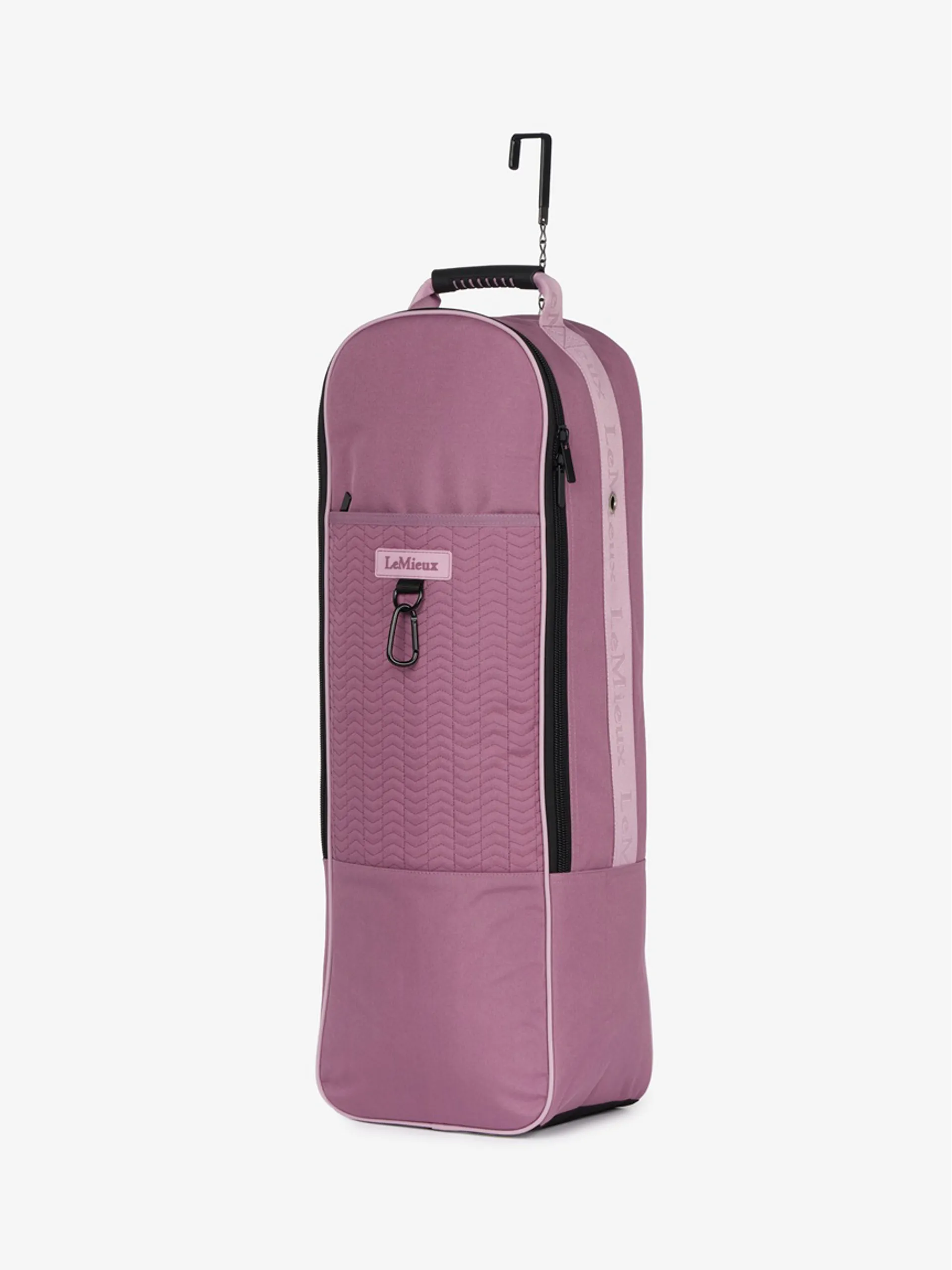 There's a hanging compartment with a secure front zip and two clips to keep your bridle secure, as well as a padded grab handle that makes the bag easier to carry. Stylish fittings and LeMieux branding elevate the look.