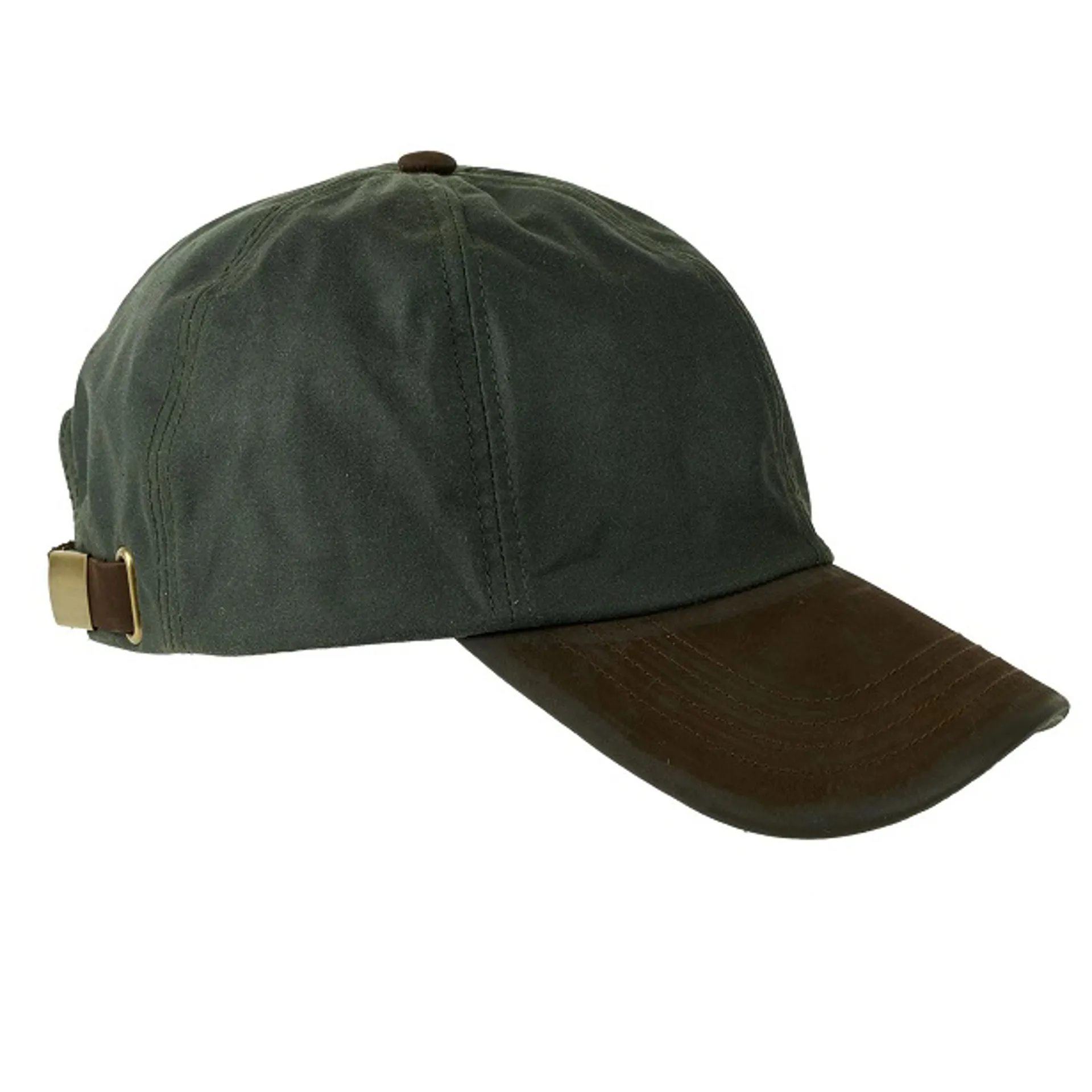 Heather Hamilton Wax/Leather Peak Baseball Cap in Olive