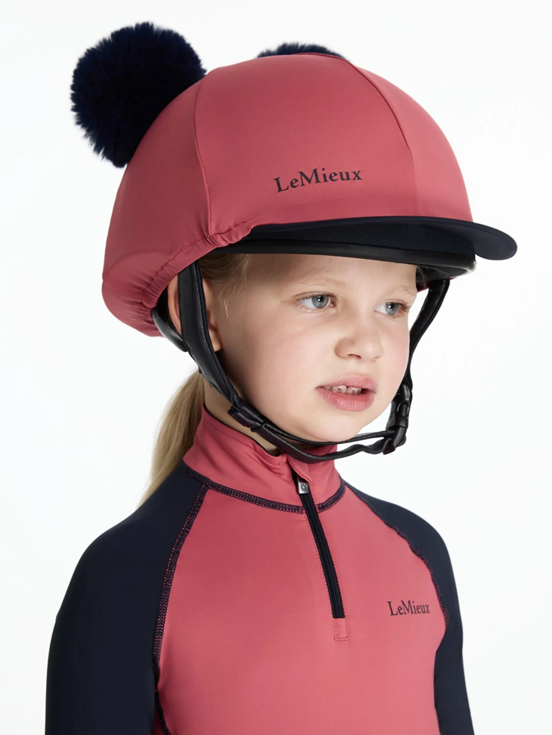 Question(s) answered about LeMieux Mini Double Pom Hat Silk in Cranberry