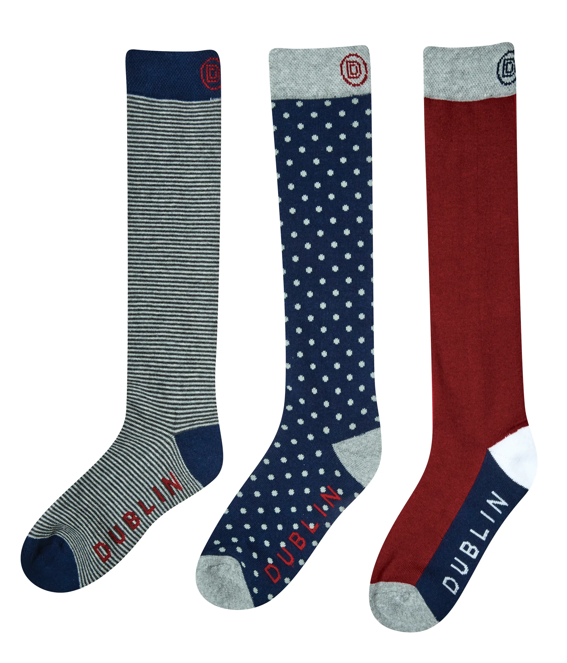 Dublin Riding Socks Pack of Three Adults in Burgundy