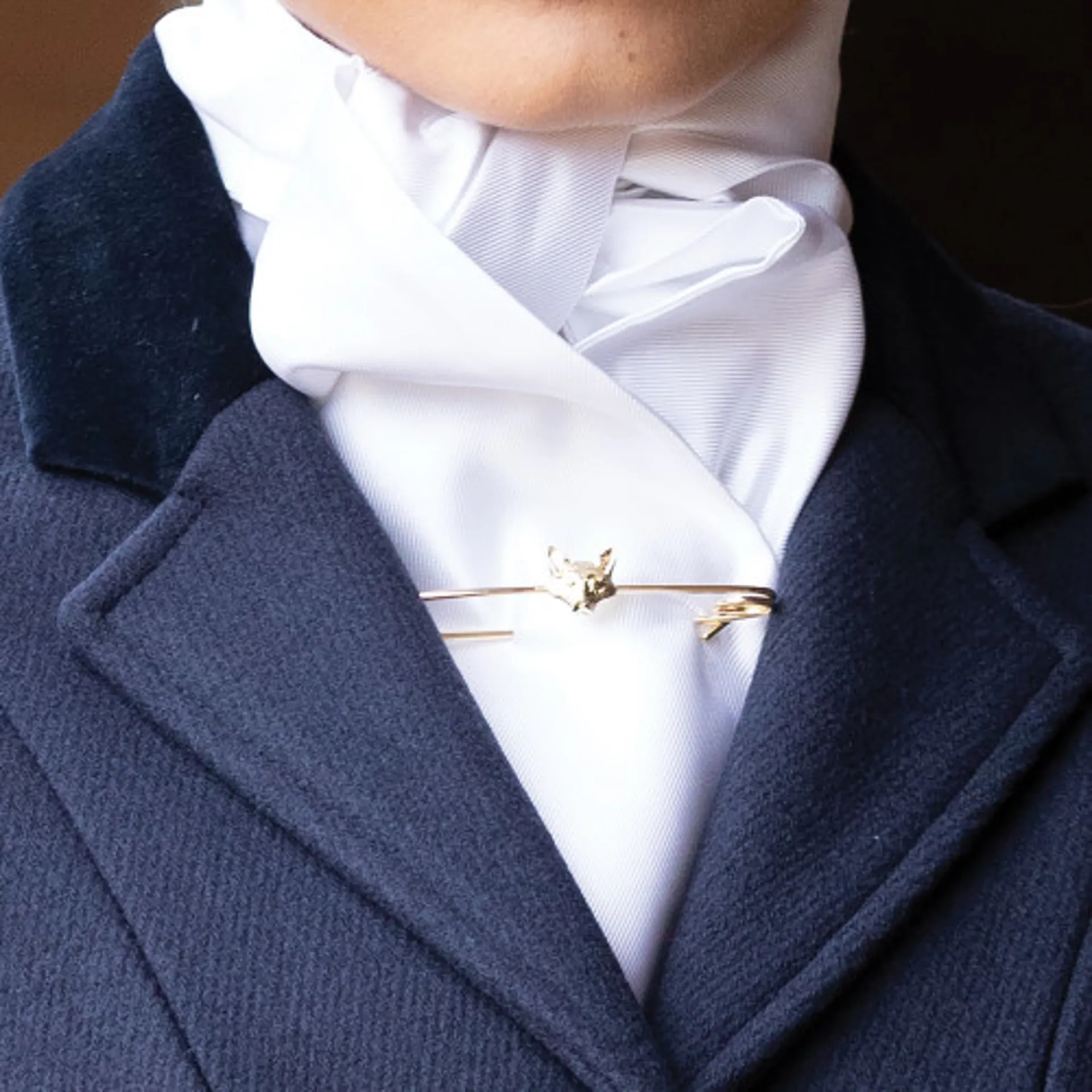 A strong, simple pin with detailed fox head central detail that compliments any trail riding, dressage, riding club outfit.