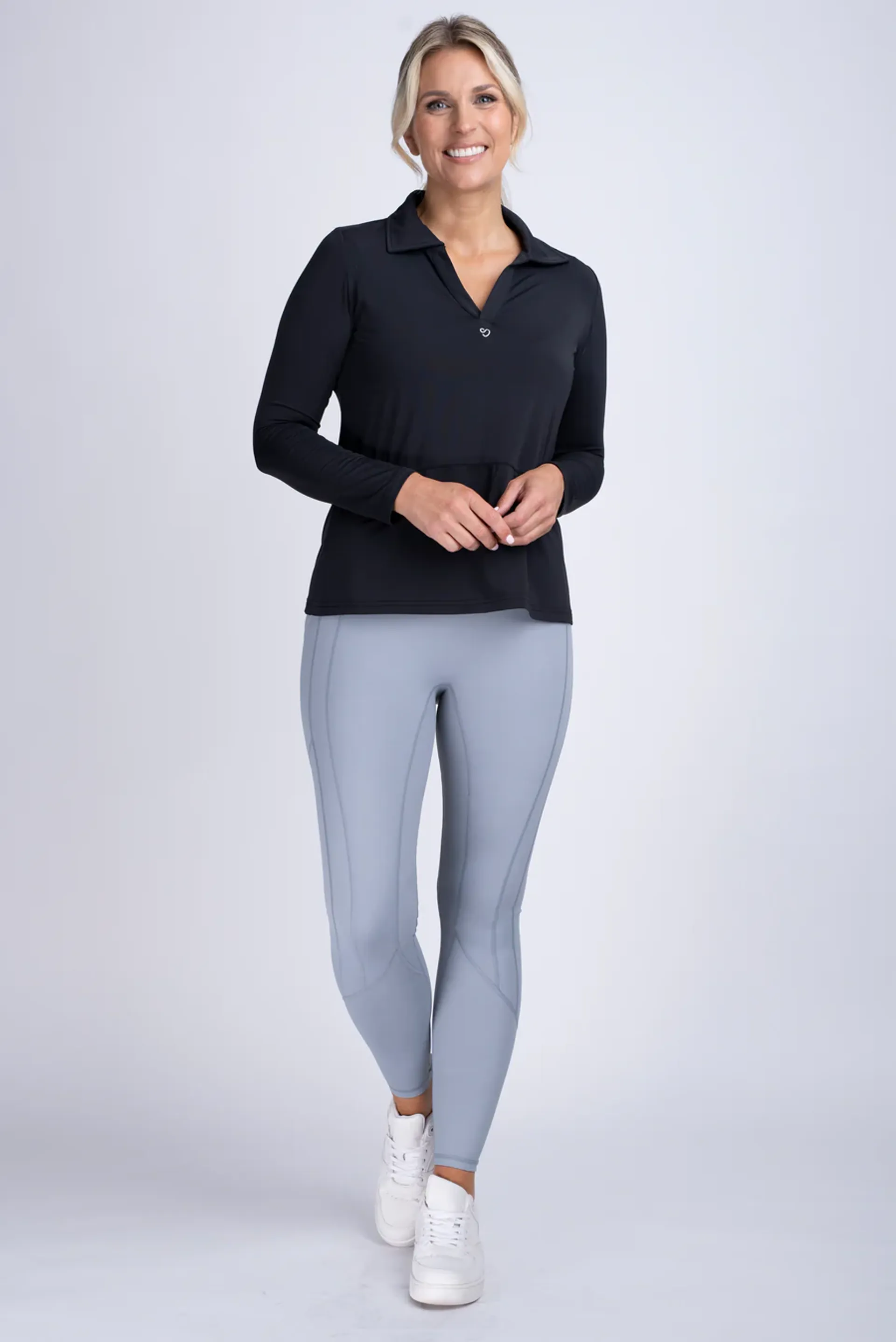 Mochara V Neck Air Tech Long Sleeve Shirt Ladies in Black