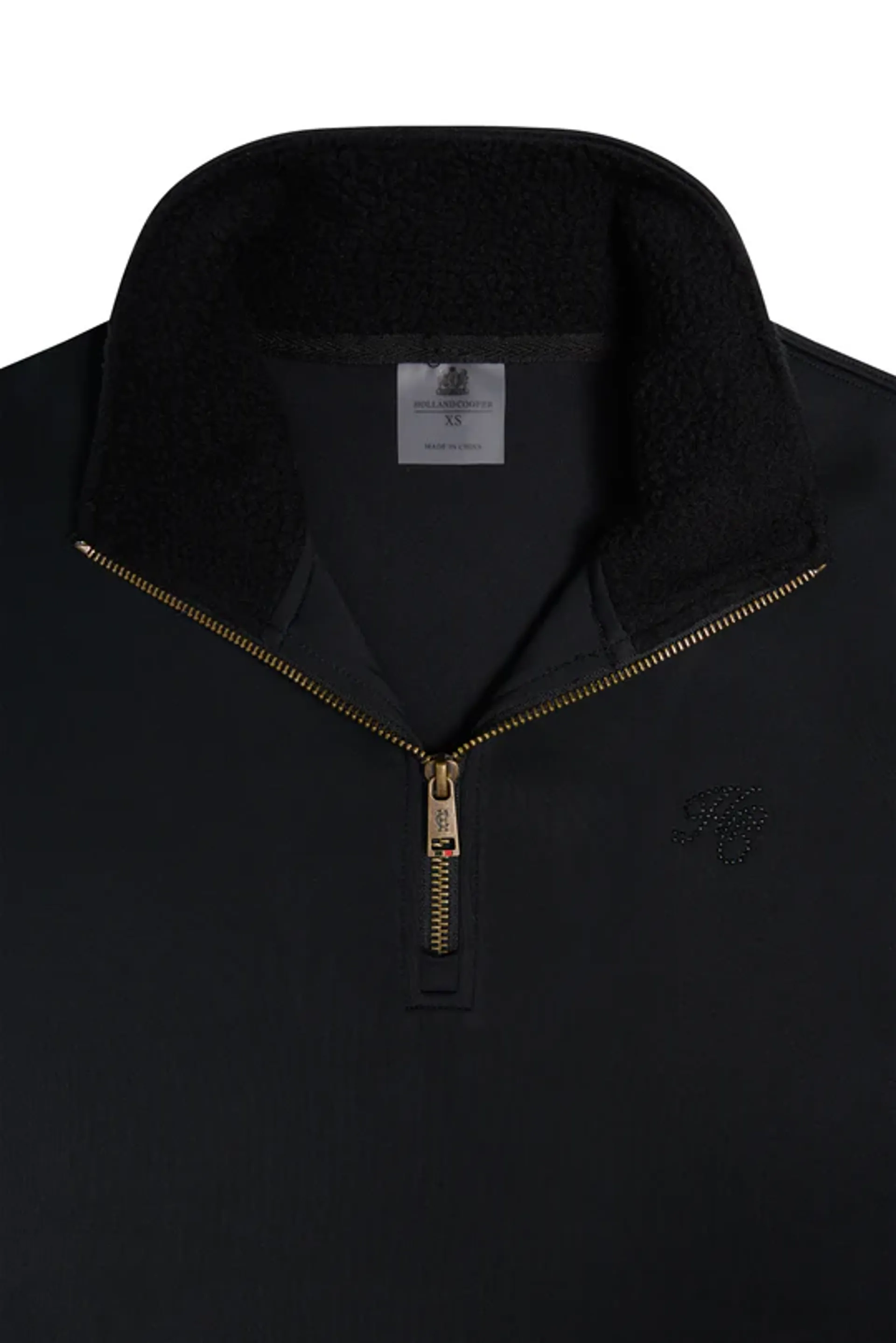 Crafted from smooth, soft-touch fabric, this piece is all about comfort. Designed for a relaxed fit with set-in sleeves, it offers ease of movement while maintaining style. The funnel neckline with sherpa on the inside provides extra warmth and coziness. Featuring a branded zip pull with a 1/4 zip opening, it's as practical as it is stylish. The high build embroidery with feature crystal branding on the chest adds a touch of elegance.