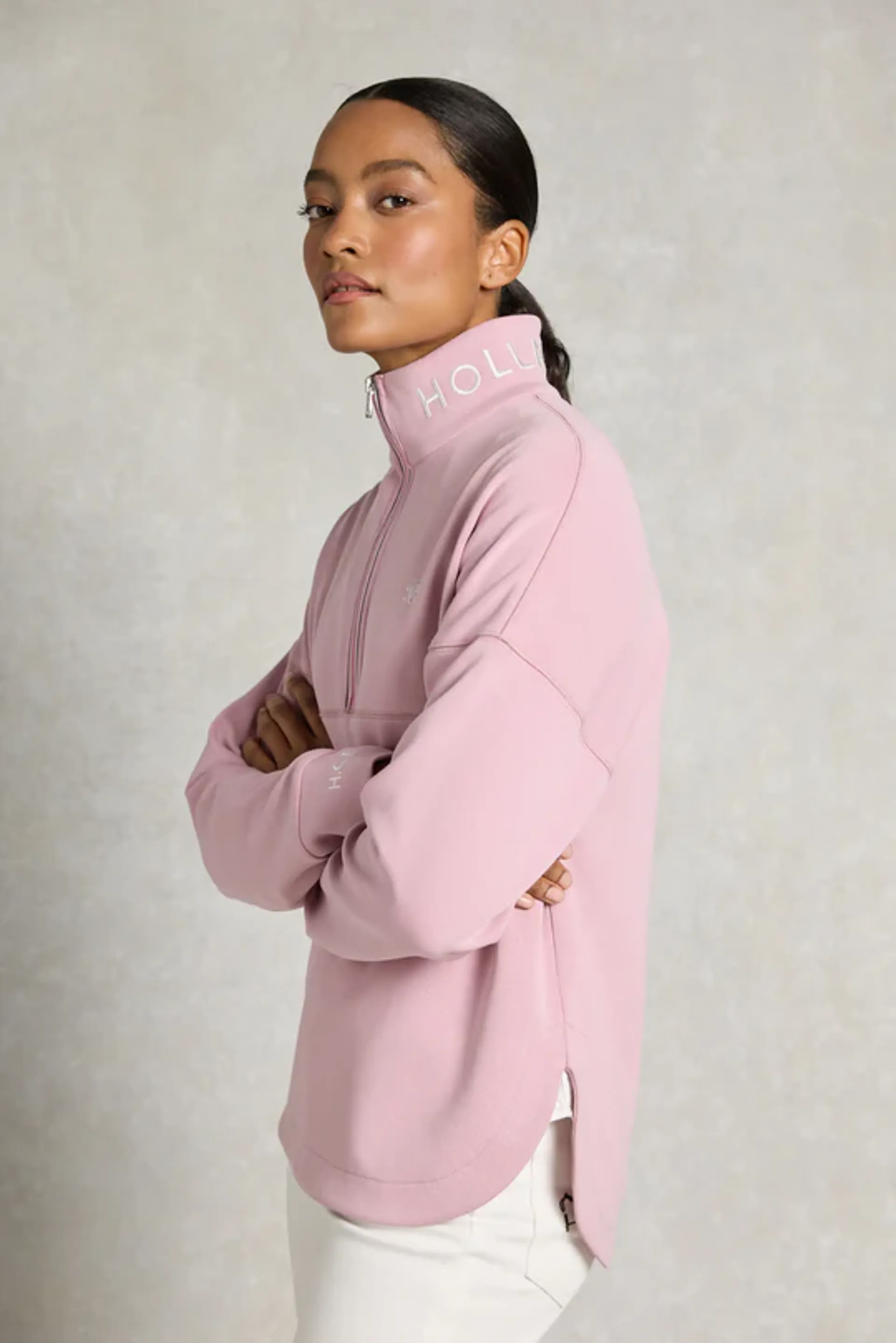 Question(s) answered about Holland Cooper Windsor Quarter Zip Sweat Ladies in Dawn Pink