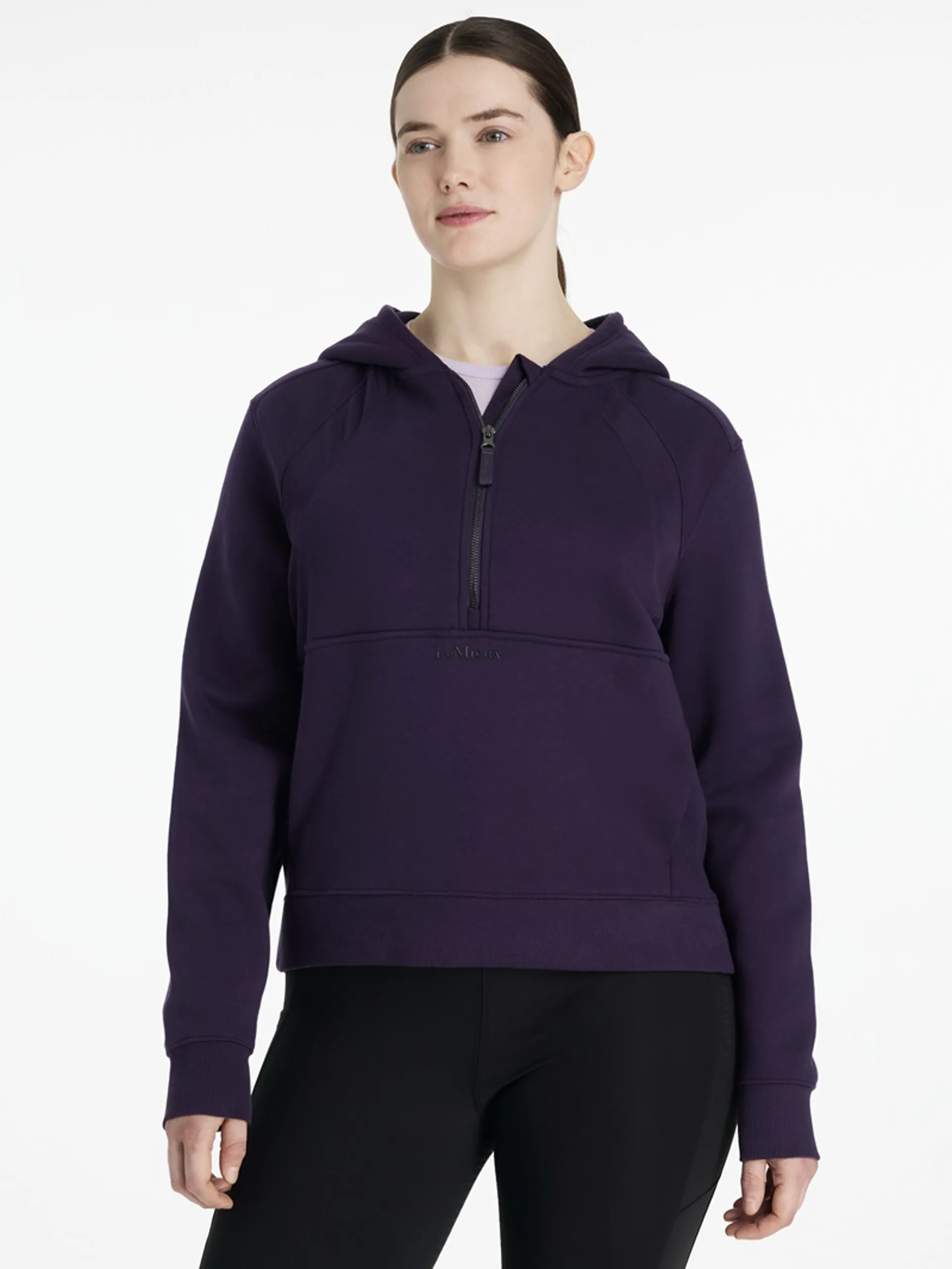 Riders can add style points with this super sleek and practical hoodie. Made in super soft heavyweight brushed back fleece, it has a helmet-friendly half zip. Discreet pockets are the perfect place to keep cold hands cosy. LeMieux branded elastic detailing inside the inner hood and zip gives it a premium, modern, luxury feel.