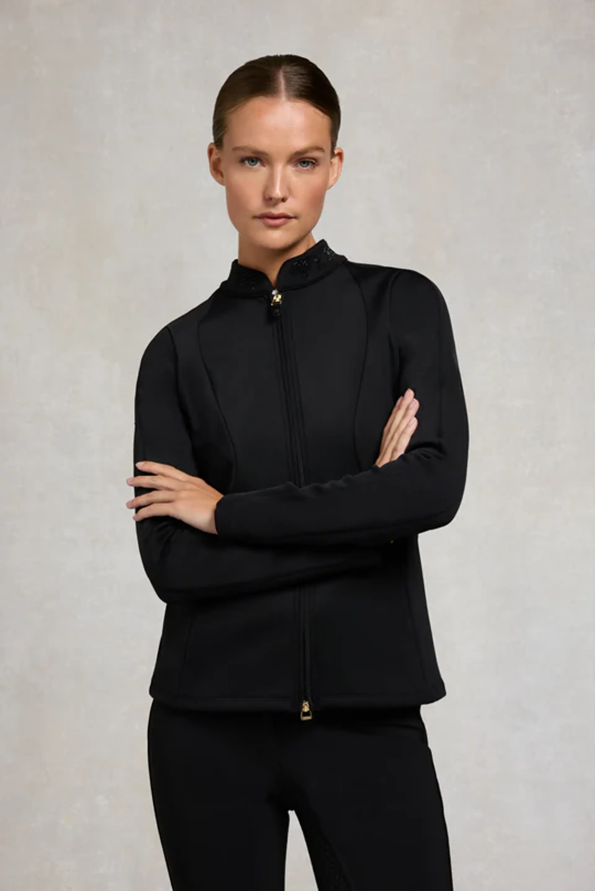 The updated Crystal Zip Jacket from Holland Cooper brings a clean, modern look to your everyday riding wardrobe. Now available in a fresh seasonal colour, it features subtle updates including a sleek concealed front zip and understated gold HC embroidery at the cuff.