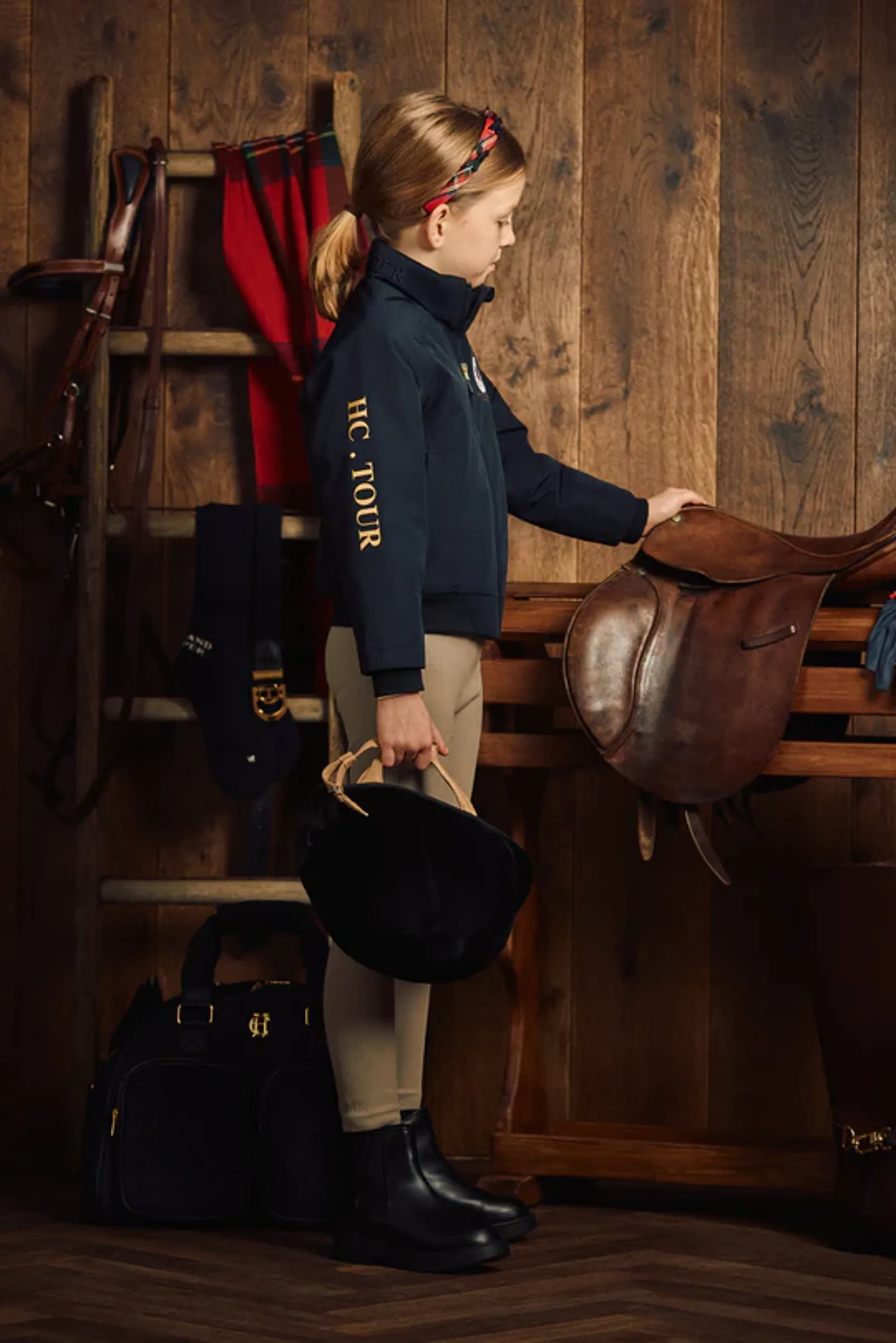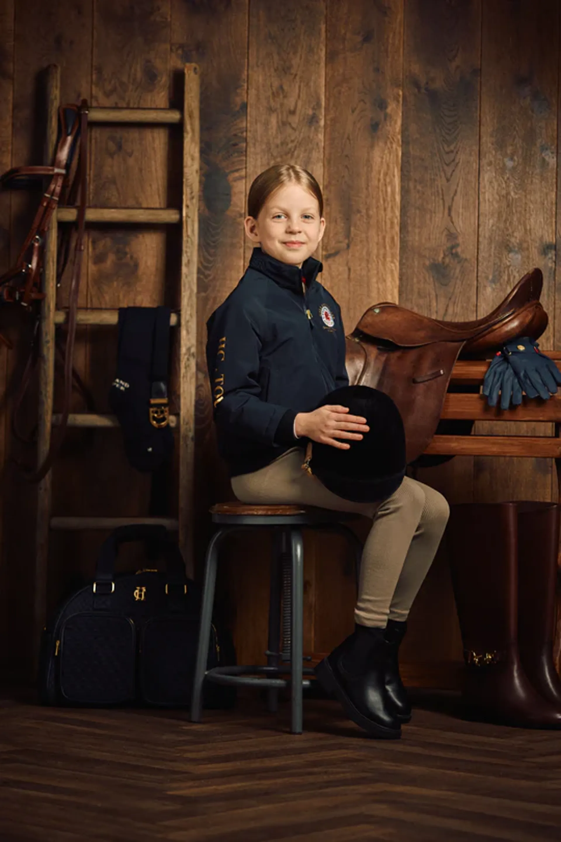 The Children’s Team HC Riding Jacket brings the same luxurious blend of sporting heritage and national pride to the junior riders.