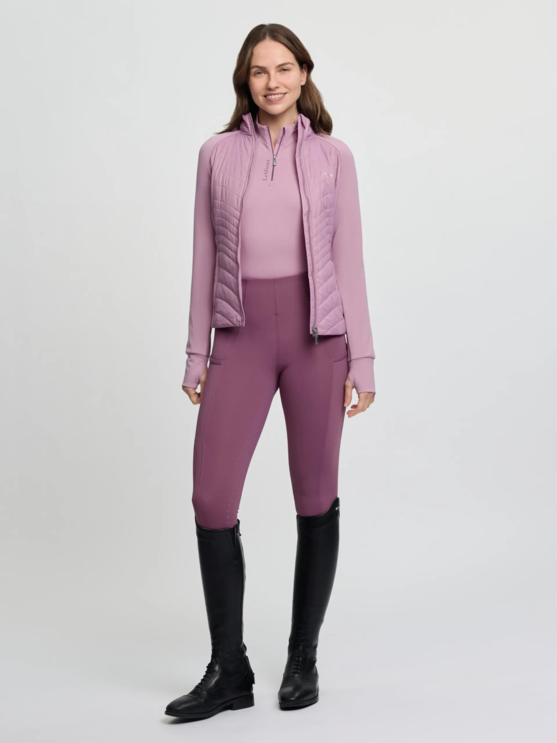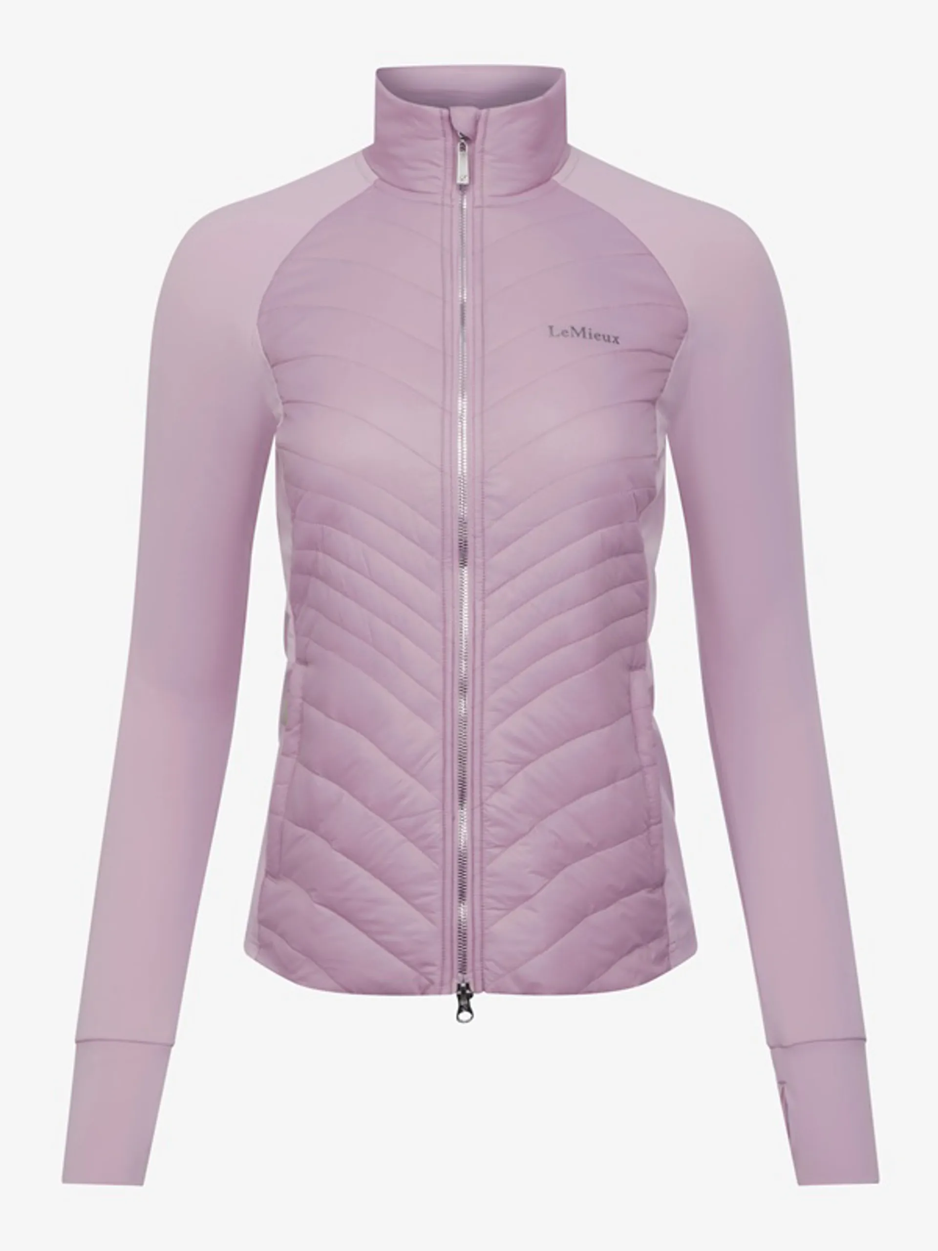 There's lightweight woven baffle quilting with recycled fill to insulate the body. A discreet high-build LeMieux print logo on the chest and a metal badge on the back of the neck confirm the quality you expect.