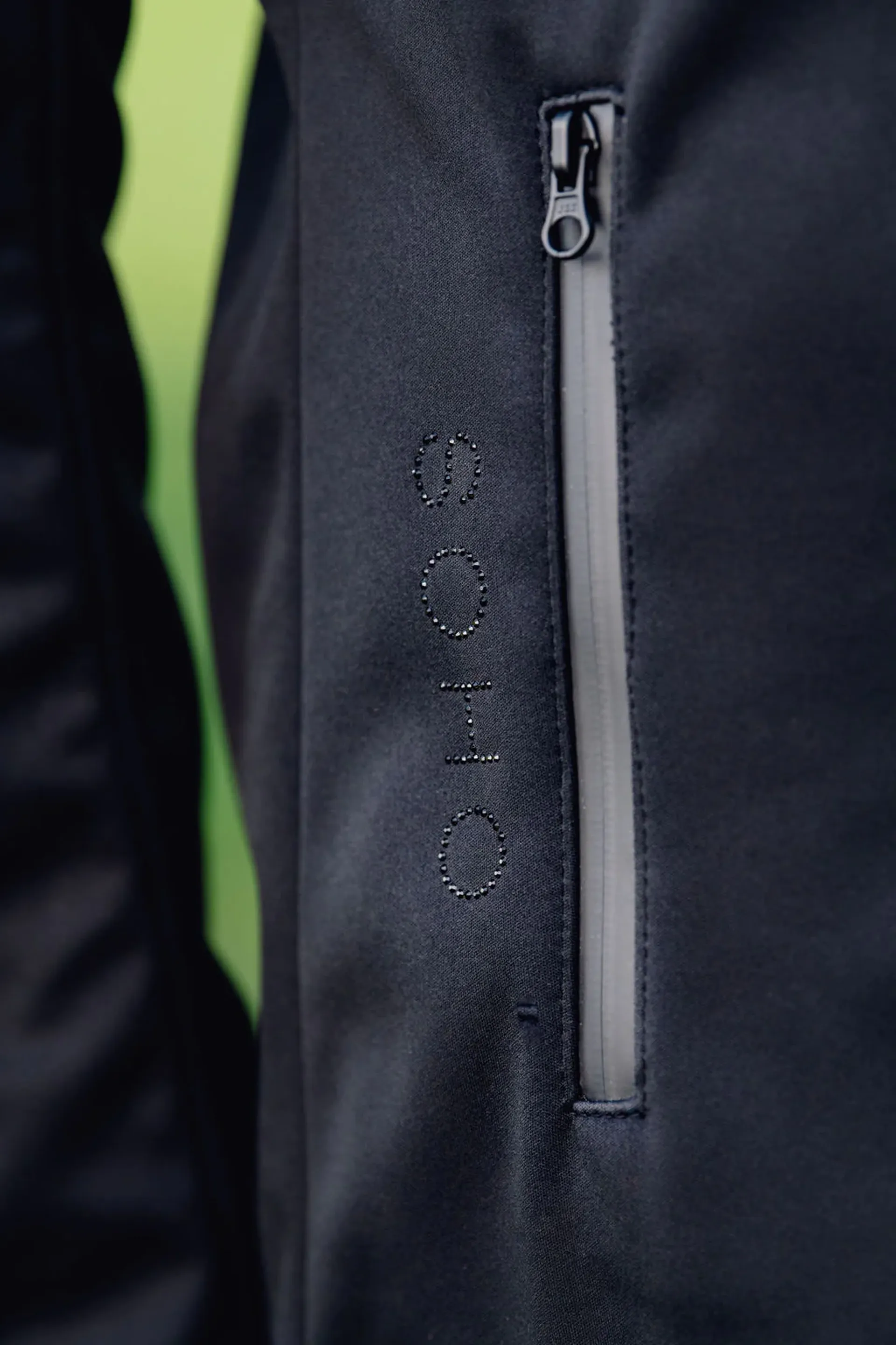 Stay warm and dry while looking stylish in the Soho Equestrian black soft shell jacket.