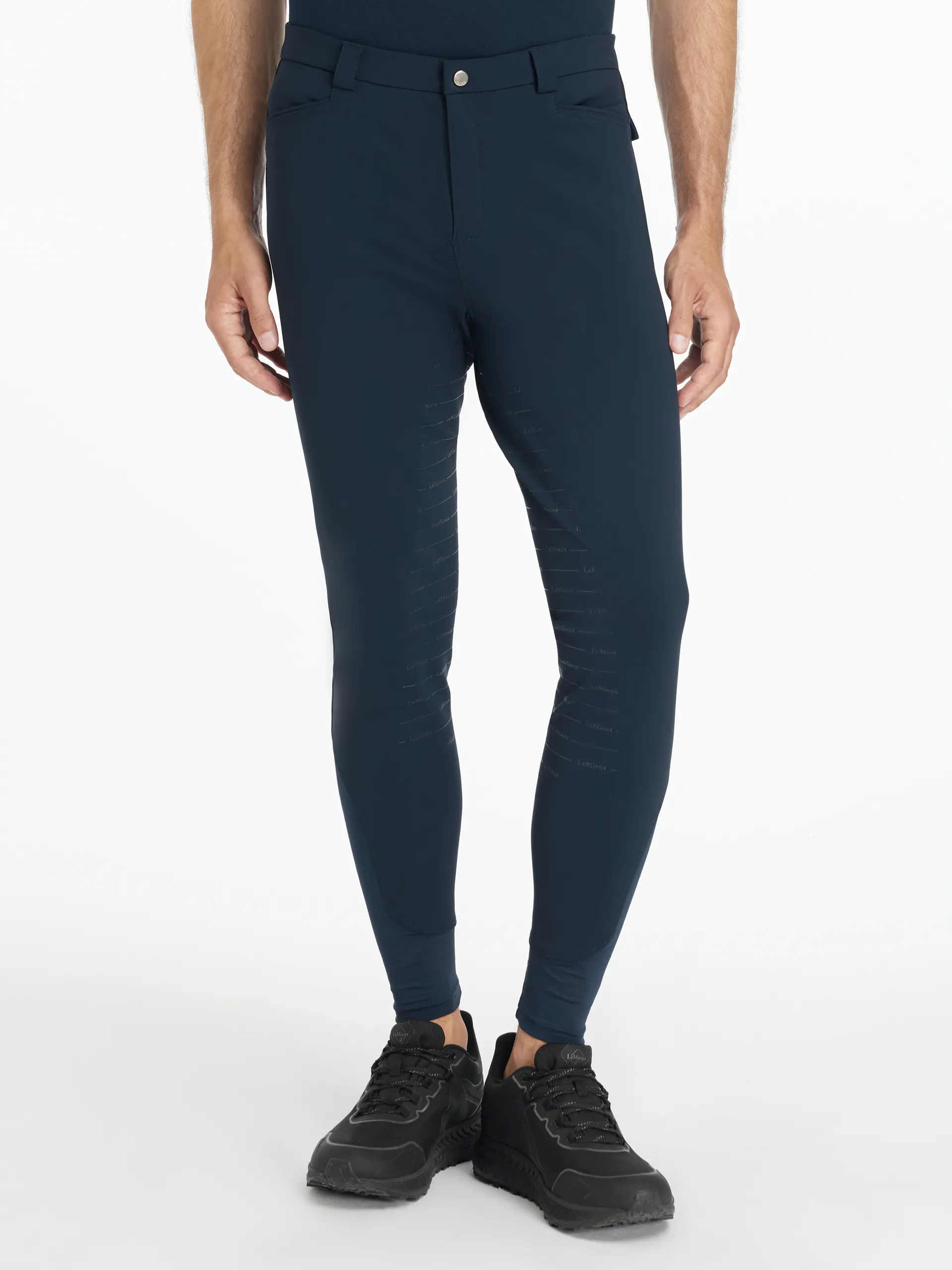The guys asked - and LeMieux listened! These must-have breeches are designed especially for men with the durability and fit you expect from LeMieux. With a slim fit silhouette in four-way stretch fabric for comfort and unrestricted movement, these breeches will support your every move. The tapered leg feels smooth under boots, while functional pockets are handy for your essentials. Grippy silicone tape on the inner waistband stops them from riding up or down during all your activities.