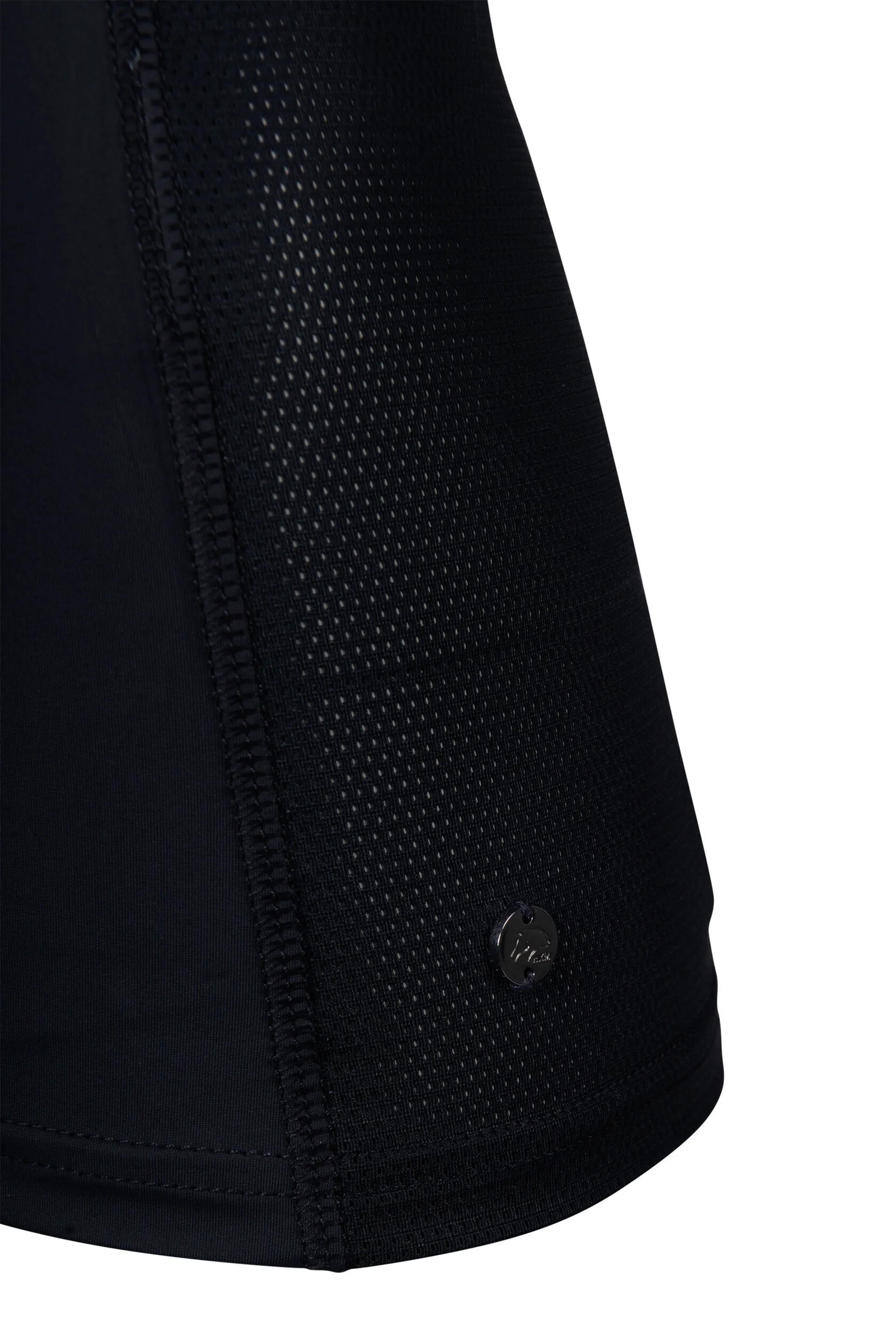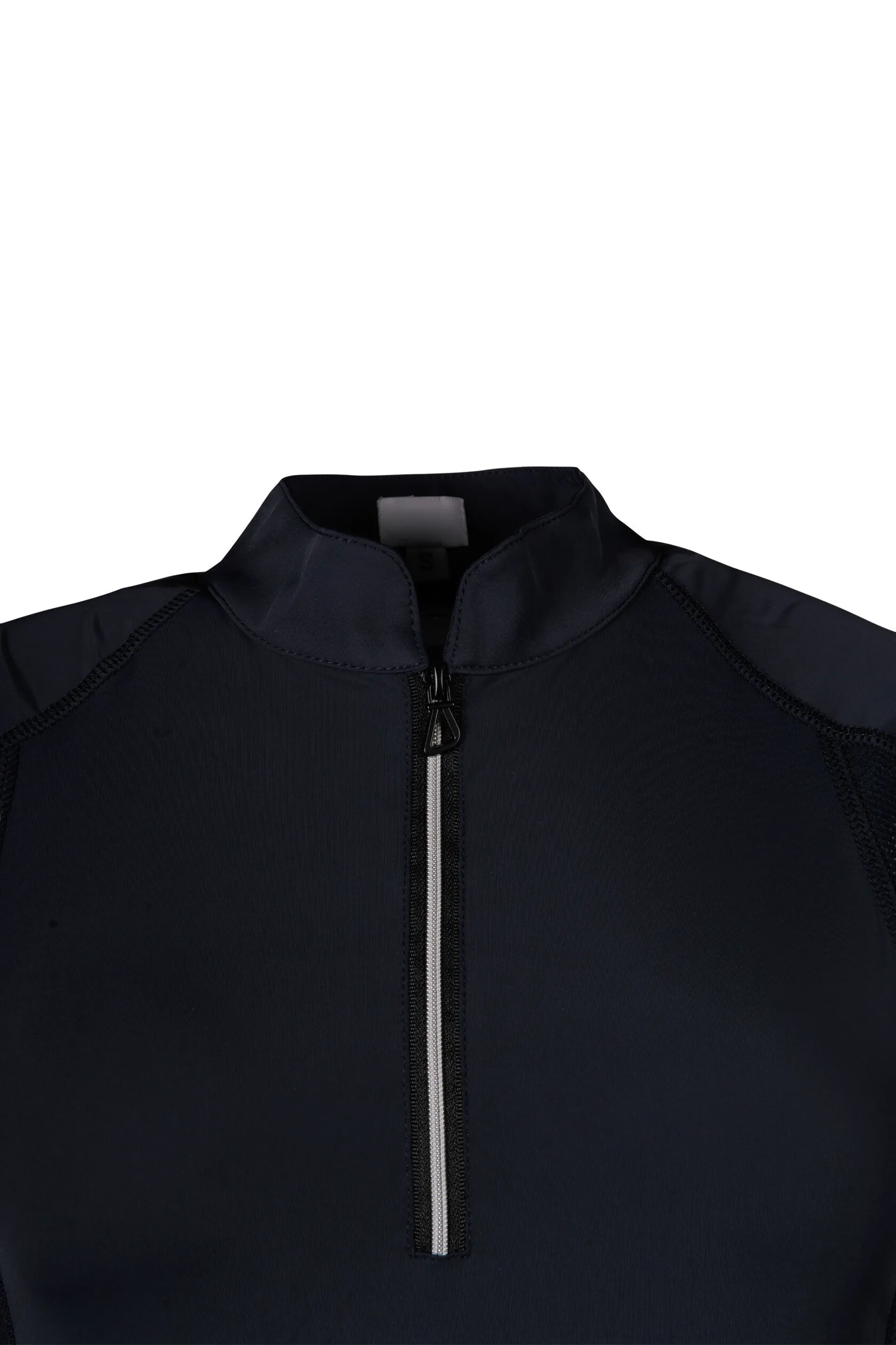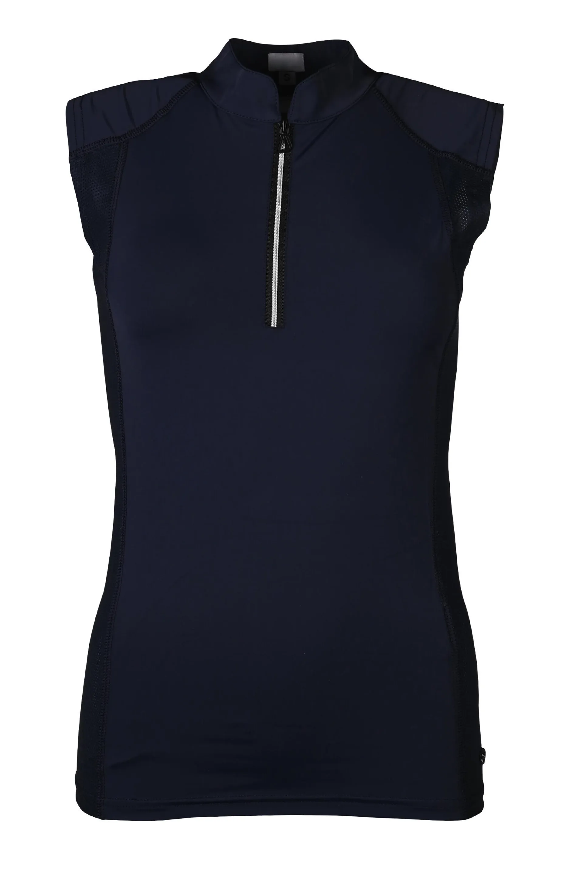 The elastic fabric offers a close, flexible fit, while mesh inserts help improve airflow on warmer days. Finished with a practical zip collar, it's easy to wear and adjust depending on how much ventilation you need.