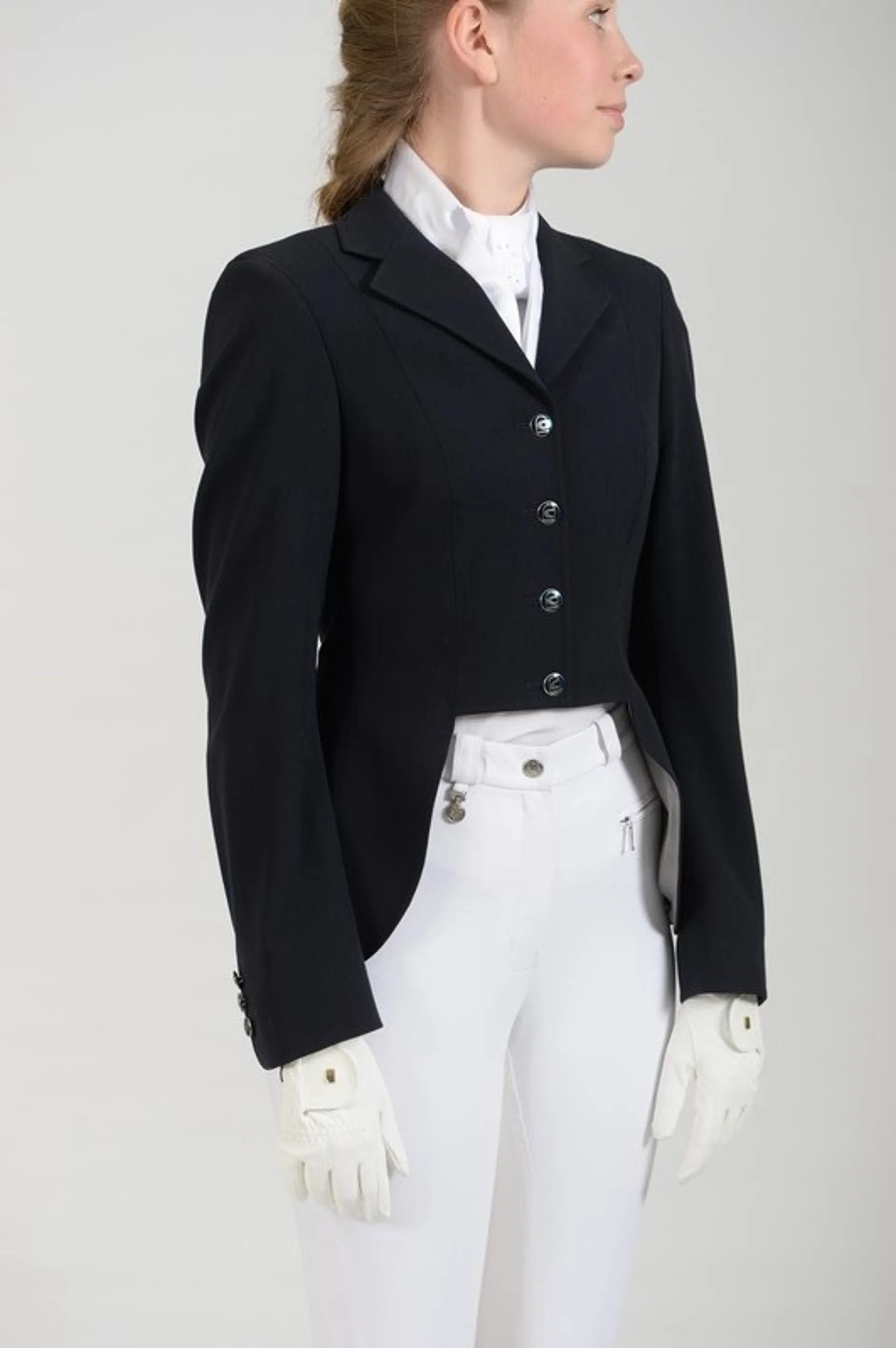 A beautifully cut short dressage jacket with the appearance of a tail coat (shadbelly)