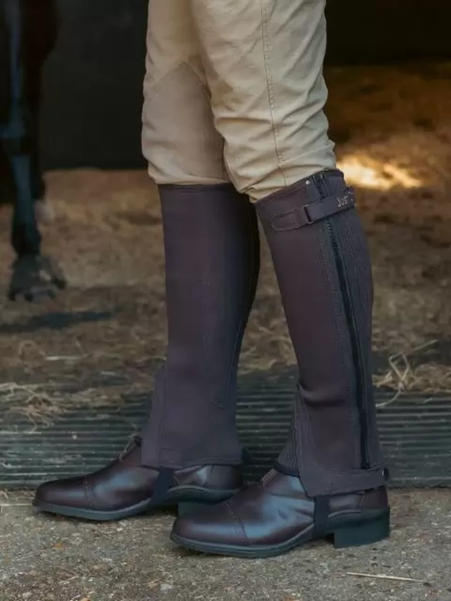 All Purpose Half Chaps - perfect for every day and every rider. The shape is great and hugs the leg, made from stretchy neoprene which supports and hugs the leg and is washable. These All Purpose Chaps fit over chunky riding boots.