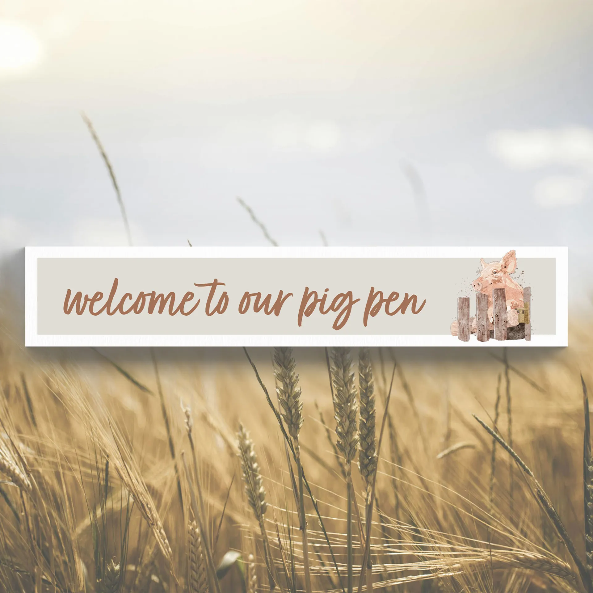 Add a touch of farmyard fun to your home with this free standing momento block. Featuring an illustrated pig and the words Welcome to our pig pen, it’s the perfect reminder of life in the countryside.