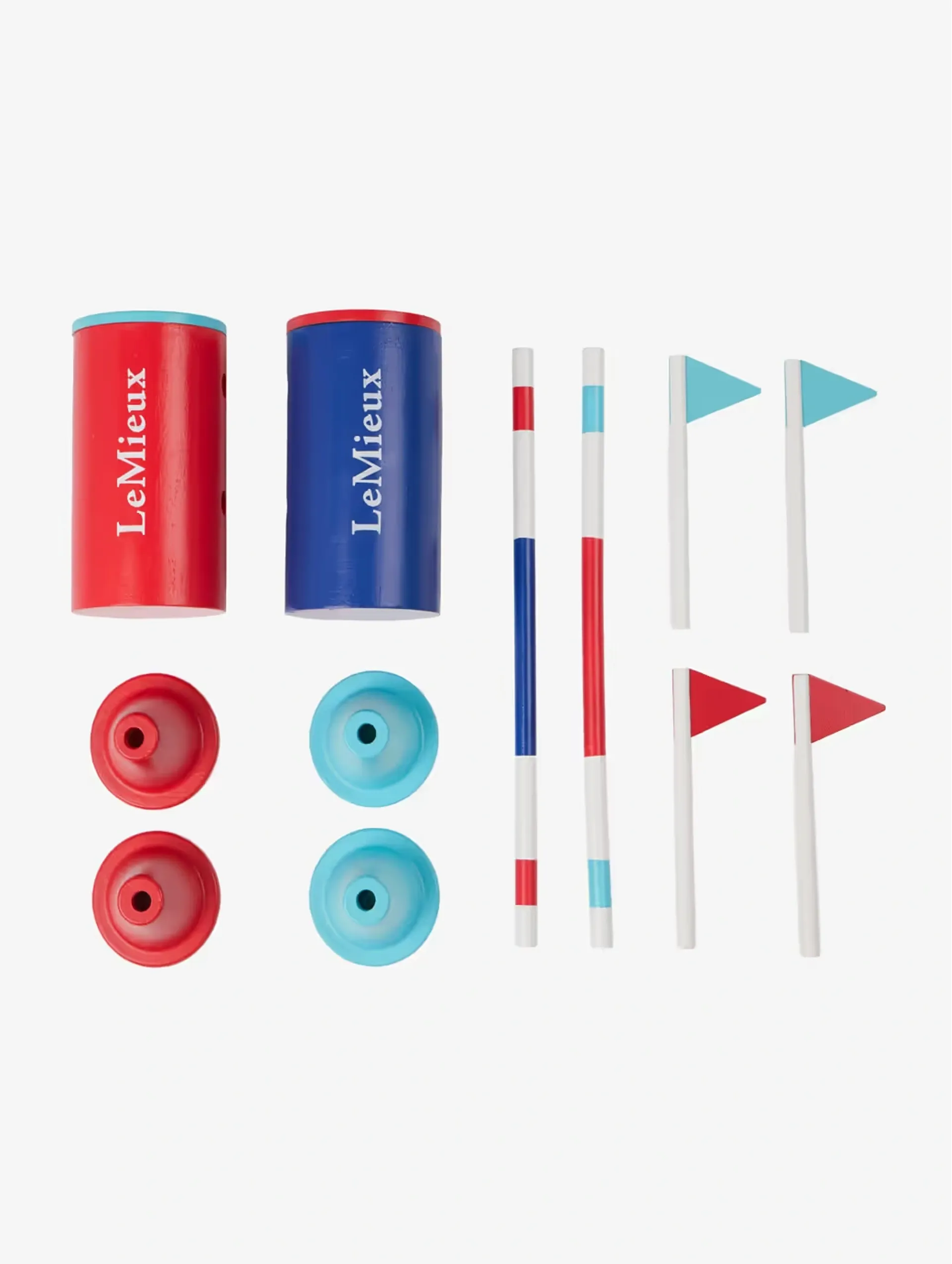 LeMieux Toy Pony Course Builder Set is a fun, brightly coloured wooden play set perfect for creating gymkhana and mounted games courses for toy ponies. Includes barrels, poles, cones, and flags for creative jumping and racing. Suitable for ages 3+.
