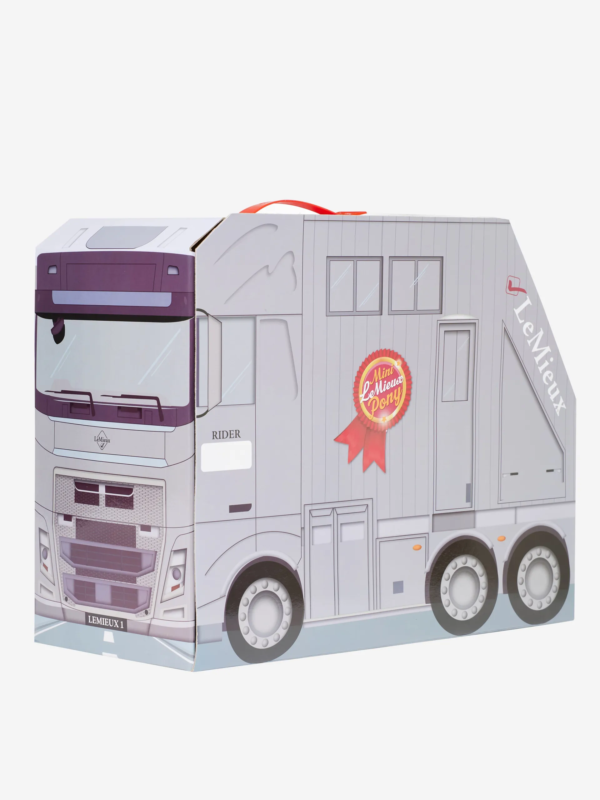 Double the fun at playtime with a Toy Pony carry case! LeMieux Toy Ponies are sold in rug wrap packaging, so this reversible carry case provides extra playtime options. Designed as a travel lorry, it opens out into a stable scene.