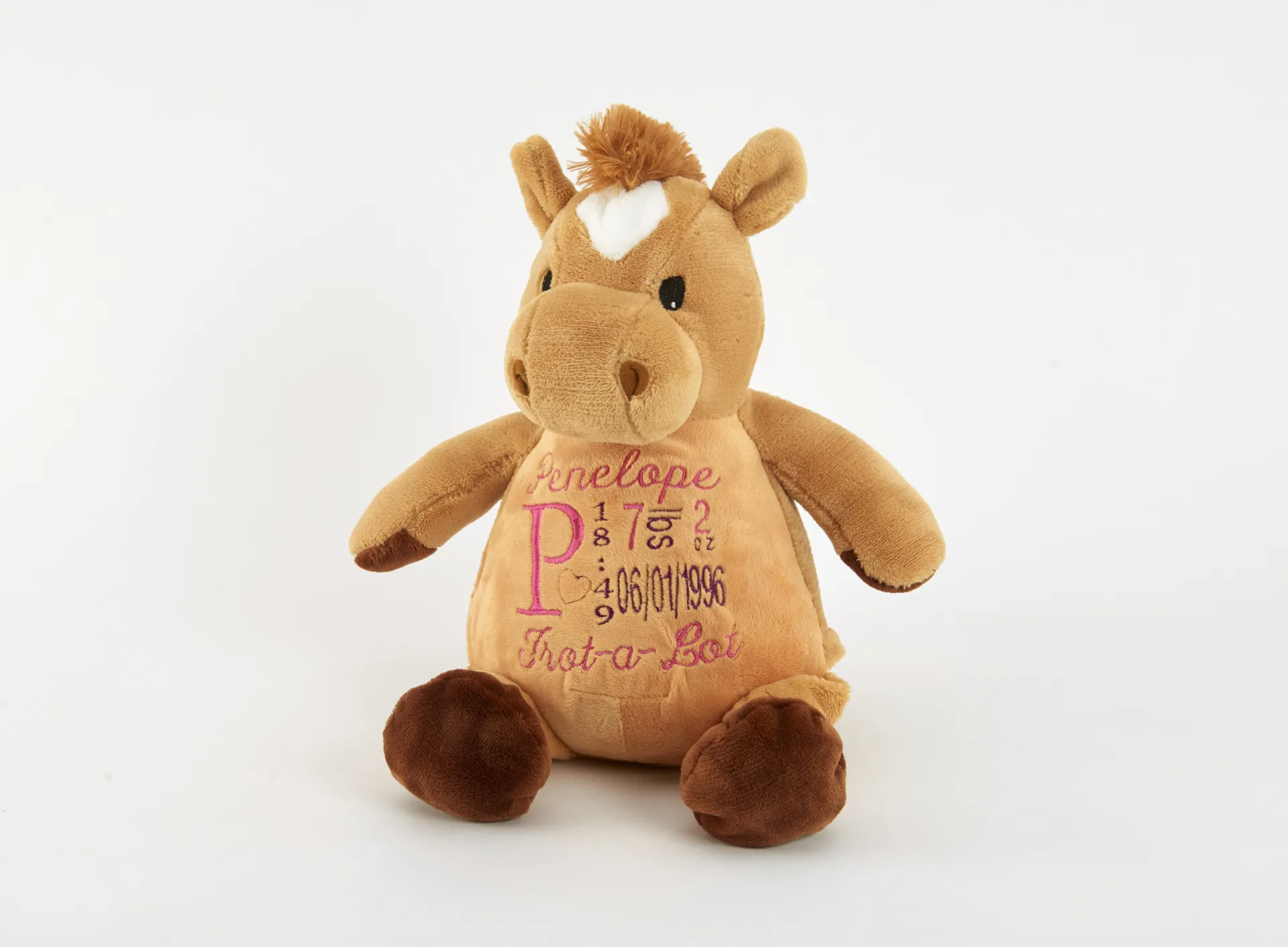 Question(s) answered about Penelope Trotalot Cuddly Horse Toy Plain or Personalised
