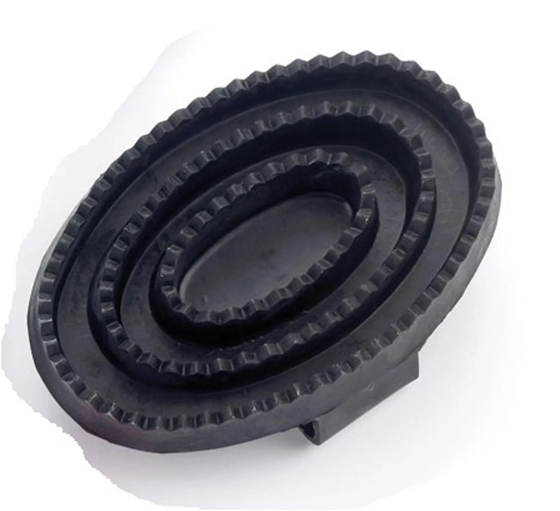 Traditional rubber curry comb from Lincoln featuring a rubber handle.
