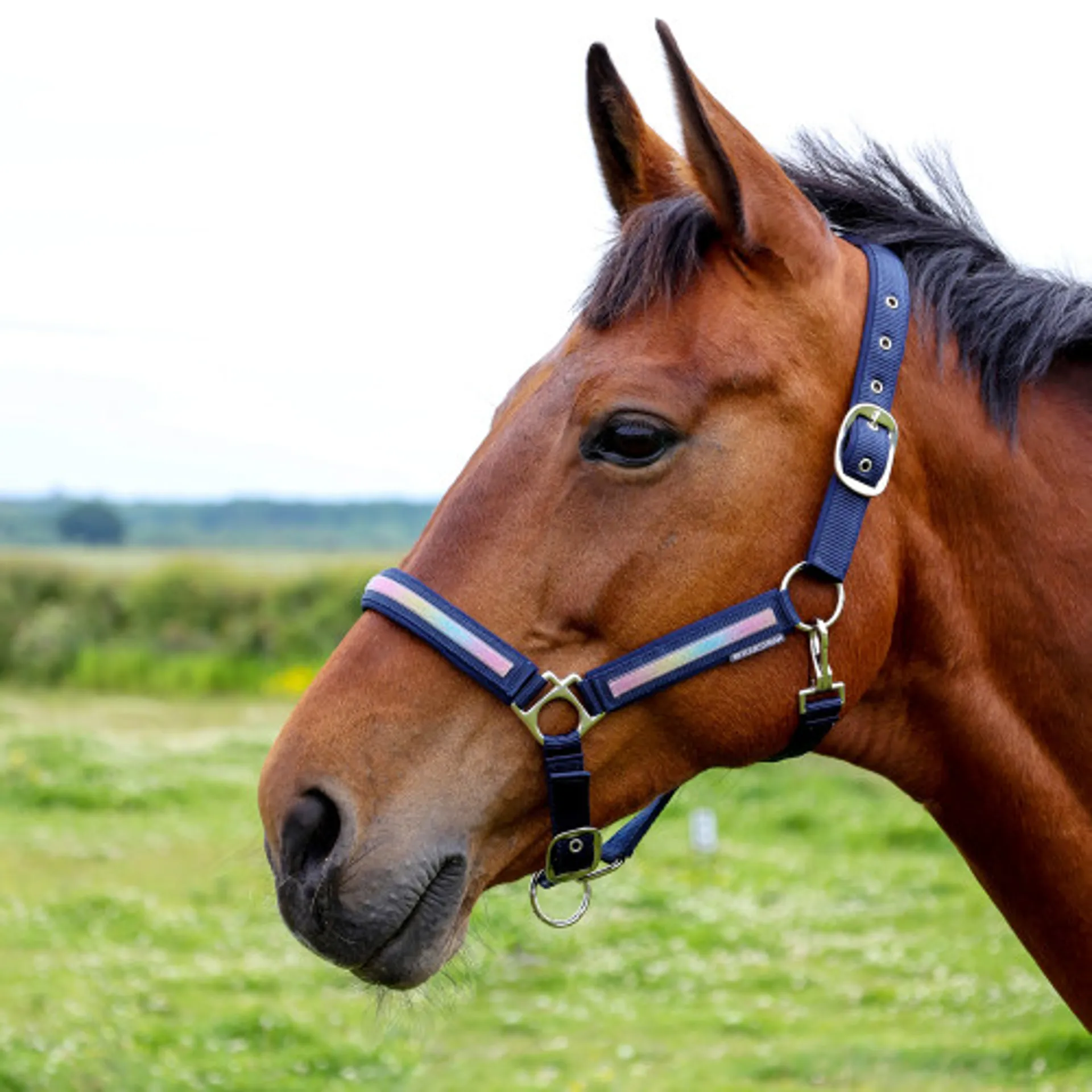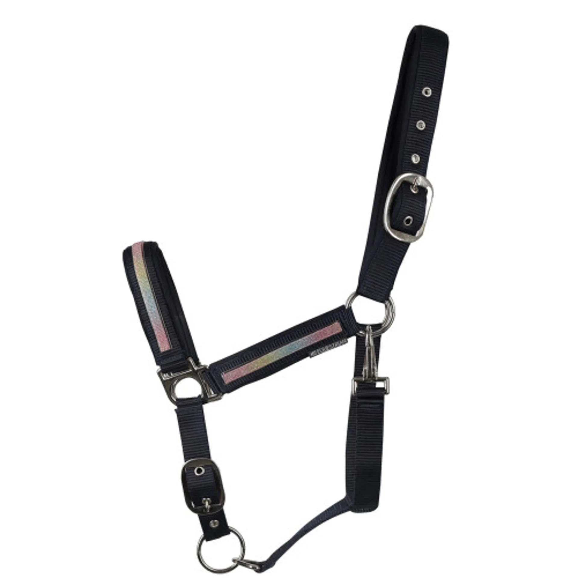 Question(s) answered about Hy Equestrian Mystic Headcollar in Navy/Rainbow Dust