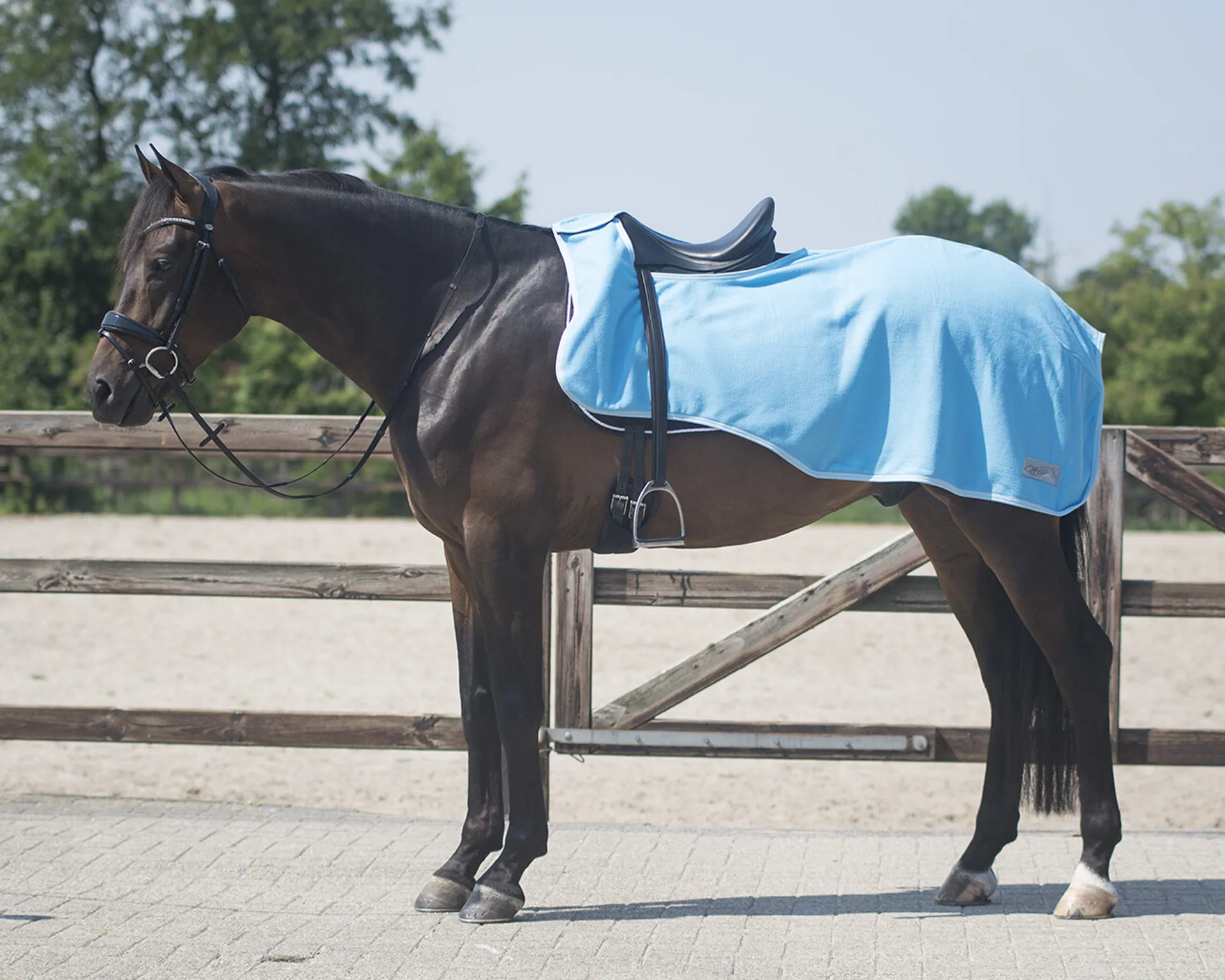 Catago cooler quarter rug, which provides all of the benefits of an exercise sheet whilst still being breathable, preventing your horse from being too warm. This means that you can protect from chills whilst warming up, and continue exercising afterwards.