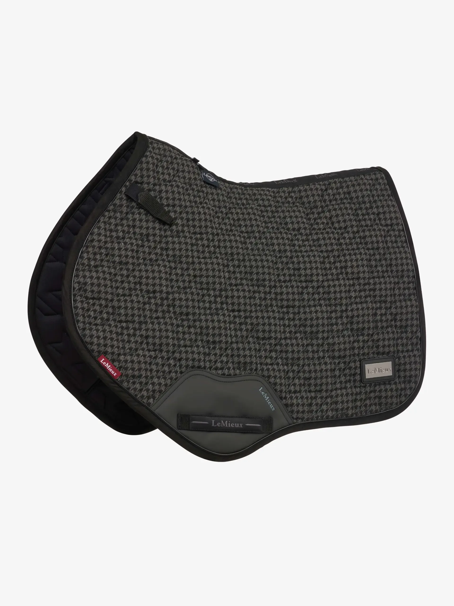 Up your game with this luxe saddle pad from the Aspen Collection. Crafted in a premium luxury houndstooth check fabric, it has a unique houndstooth quilting pattern that's sure to stand out from the crowd. Patent PU piping catches the light, and a gunmetal LeMieux badge matches back to the rest of the Aspen Collection.