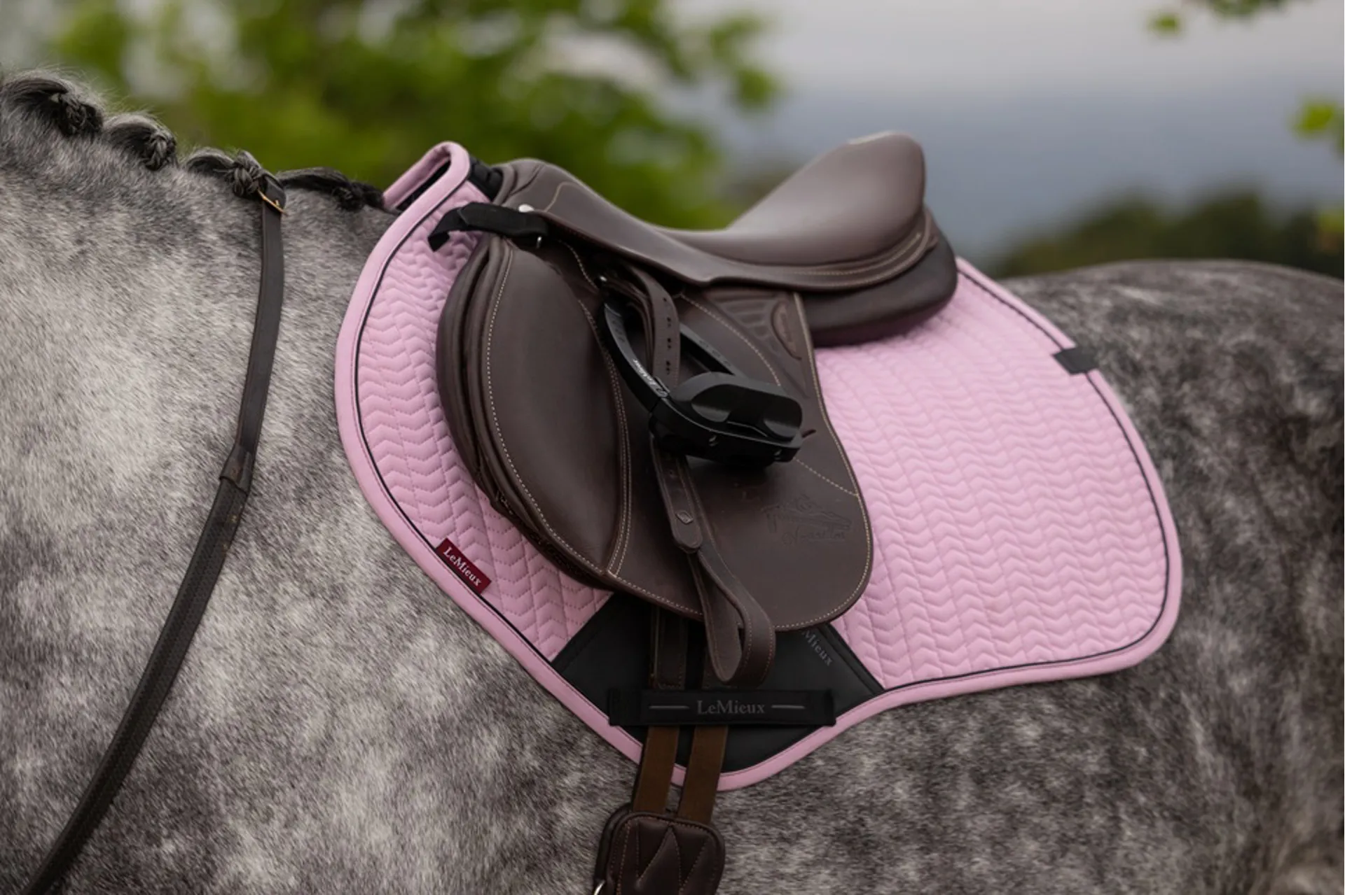 The sporty matte-textured faux leather girth protection area is complemented by an embossed logo. The signature LeMieux hidden girth loop channels mean you can precisely place your girth. A unique LeMieux branded faux leather tab provides a luxurious finishing touch.
