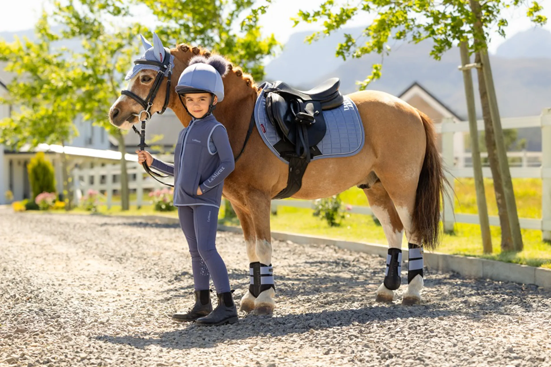 An iconic jumping pad with its high wither cut, elasticated D-ring tabs and swept back profile, the LeMieux mini suede saddle pads offer practicality and comfort under the saddle for ponies.