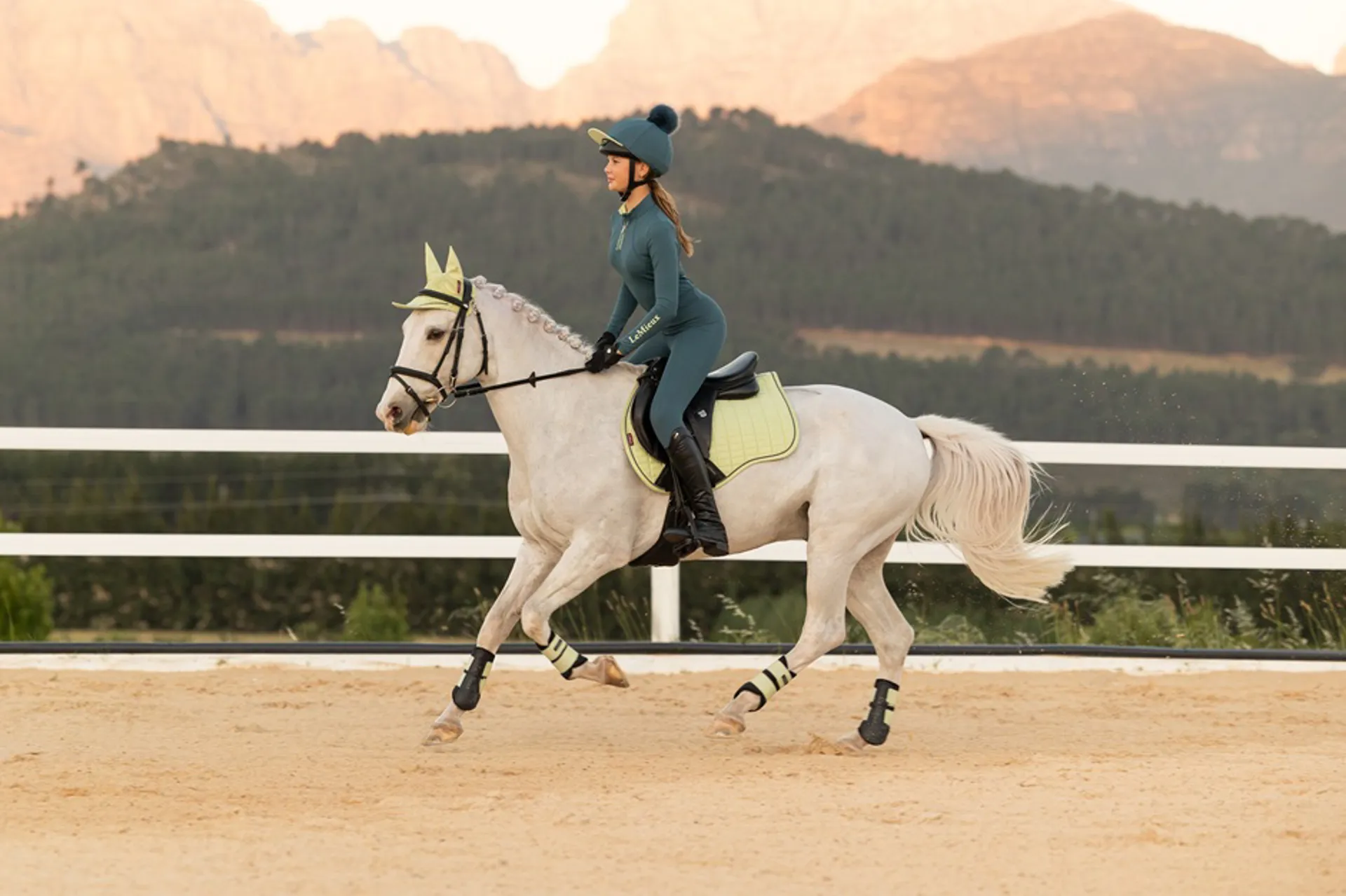 The luxurious yet easy-care suede-effect upper is perfect for everyday occasions, while contoured suede-effect binding prevents mis-shaping. The breathable, anti-static, antimicrobial and quick drying bamboo blend lining absorbs and controls sweat under the saddle. It's also beautifully comfortable and secure, minimising friction even on sensitive-skinned horses.