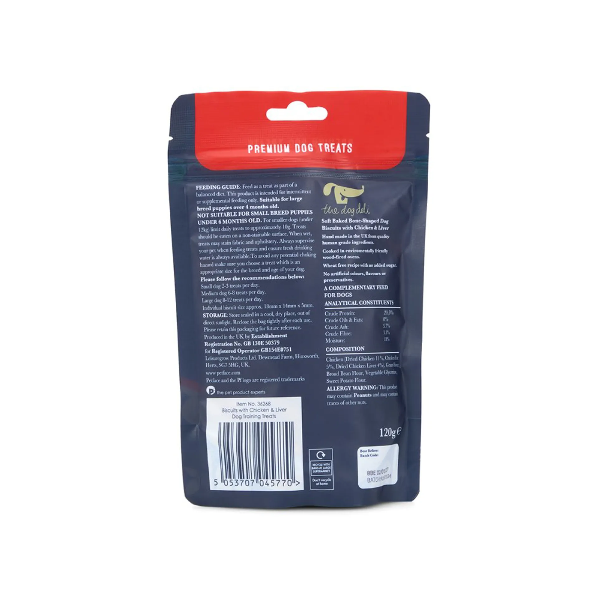 Petface Deli Biscuits Chicken and Liver Training Dog Treats are ideal for rewarding your dog during training sessions. Hand-made in the UK from quality human-grade ingredients, these treats are cooked in environmentally friendly wood-fired ovens to ensure a high-quality snack for your pet.