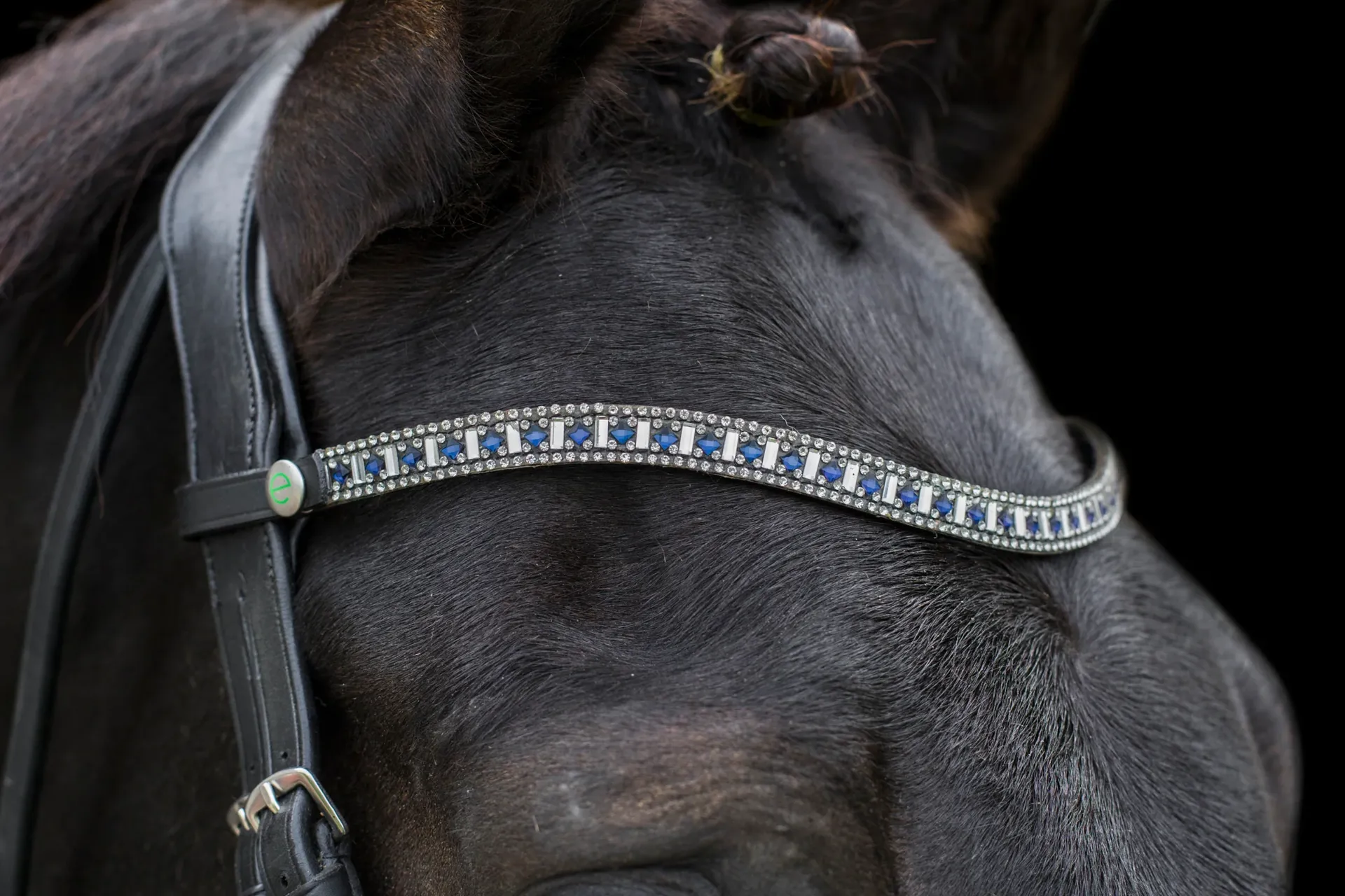 An elegant browband with delicate sapphire and diamante detailing, designed for comfort and easy fitting.