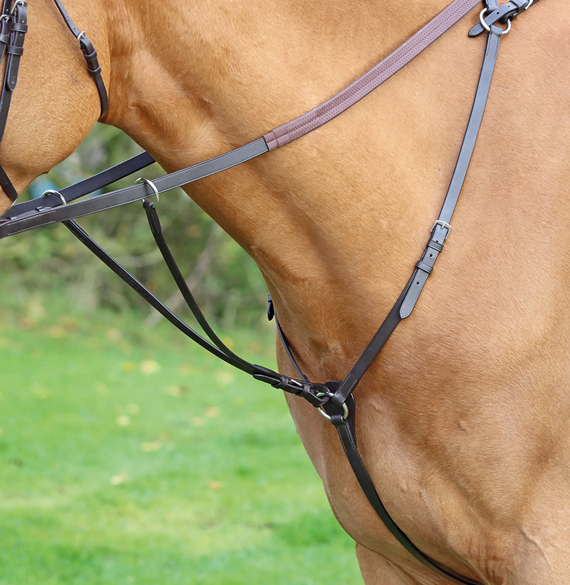 If an item is showing as In Warehouse this means it is not available immediately but will usually be available to be collected or sent out within 7 working days.Offering fantastic value for money, the Velociti GARA Hunt Weight Breastplate is made from heavier weight leather to optimise strength and ensure saddle stability.Incorporating a three-point design, this breastplate can be adjusted on both shoulders, saddle points and girth attachment to allow for a perfect fit, without restricting your horse’s movement.